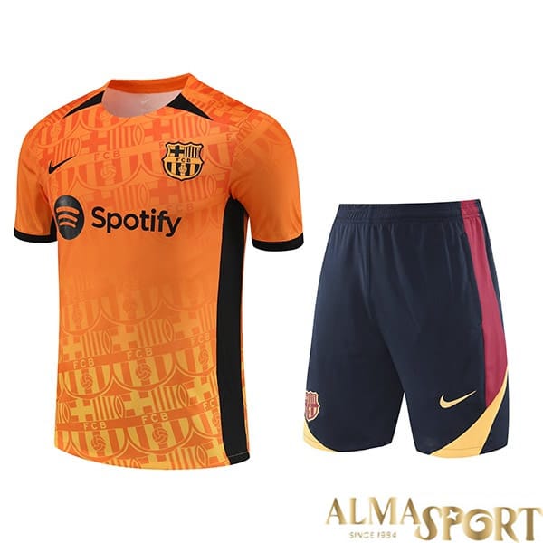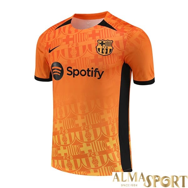 Camiseta entrenamiento FC Barcelona en Naranja Negro, 2024/2025. Tela y acabados de máxima calidad.